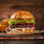 Pão, hambúrguer de boi, hambúrguer de frango, ovo,…