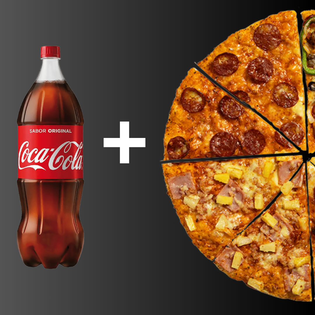 Massa, molho ao sugo,mussarela, provolone ,queijo prato e orégano.